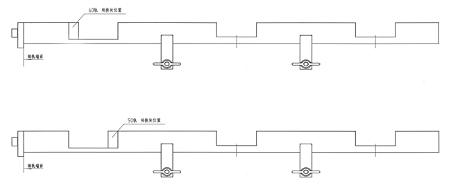 5.2 50kg/m和60kg/m鋼軌使用的是一個定位尺,如圖所示,將轉換塊安裝在軌端一側即為60kg/m鋼軌使用,將轉換塊安裝在另一側即為50kg鋼軌使用。