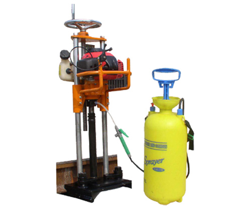 該機采用主機和夾具分體方式,具有快速下道特點,在作業中如需下道,可直主機一同拔出,拿下底座,將主機放到安全地方,待火車通過后先將底座放置在鋼軌上,調整好底座,將主機導向桿與底座導向套對接,可繼續鉆取。提高了工作效率,減輕了工人的勞動強度,是線路鋪設和維修的必備工具。